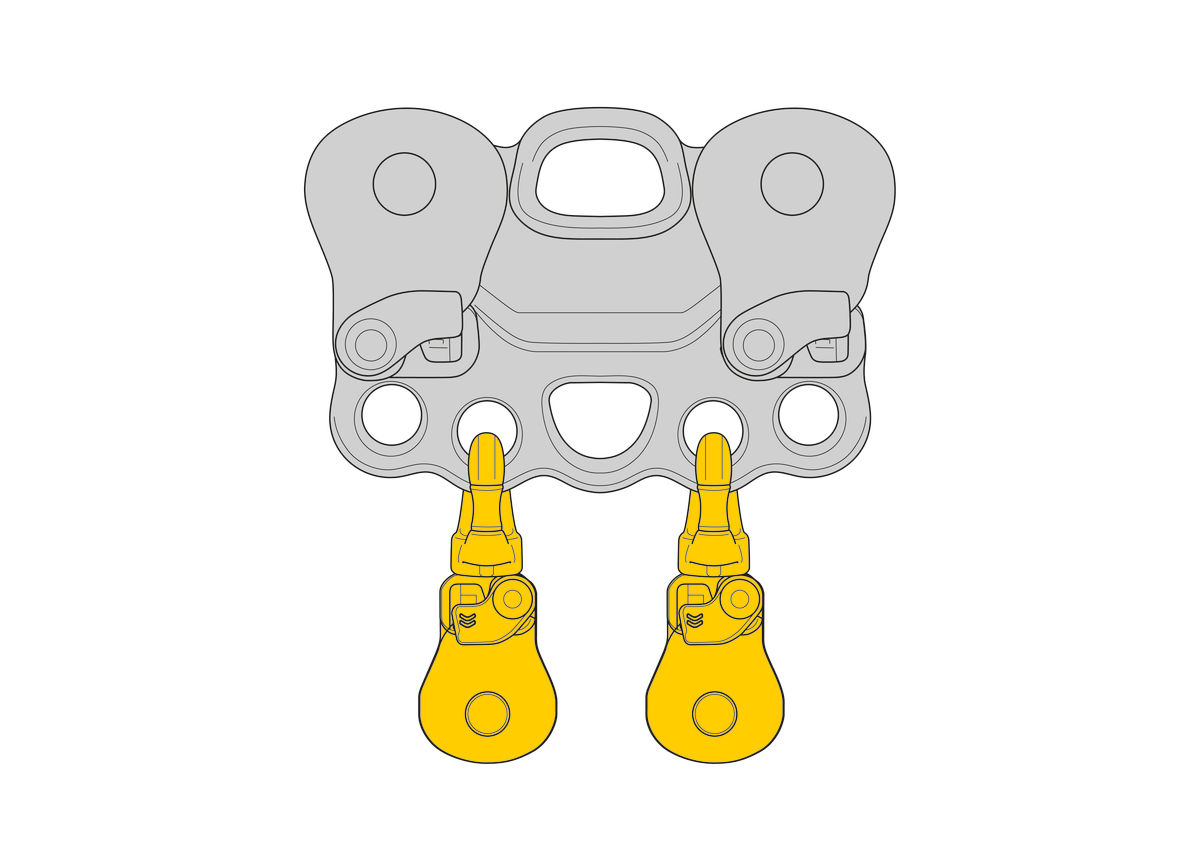 - Accommodates up to two carabiners and allows the use of ropes and slings to facilitate rigging